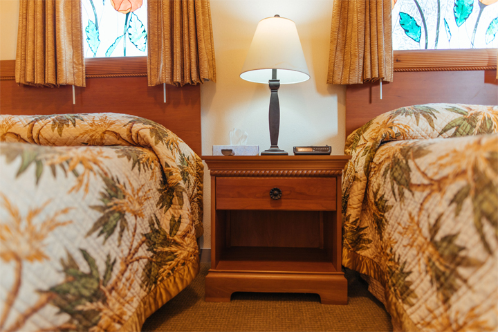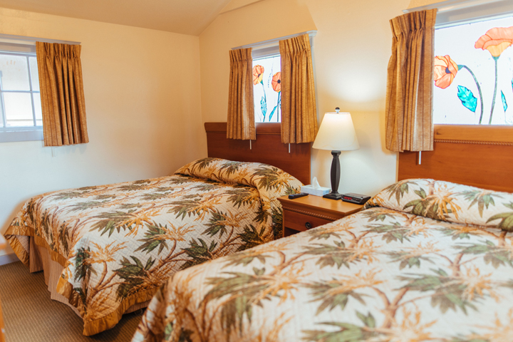 Cottage 68 as shown, is a two bedroom cottage. It's amenities are a microwave, mini refrigerator, and coffee maker.